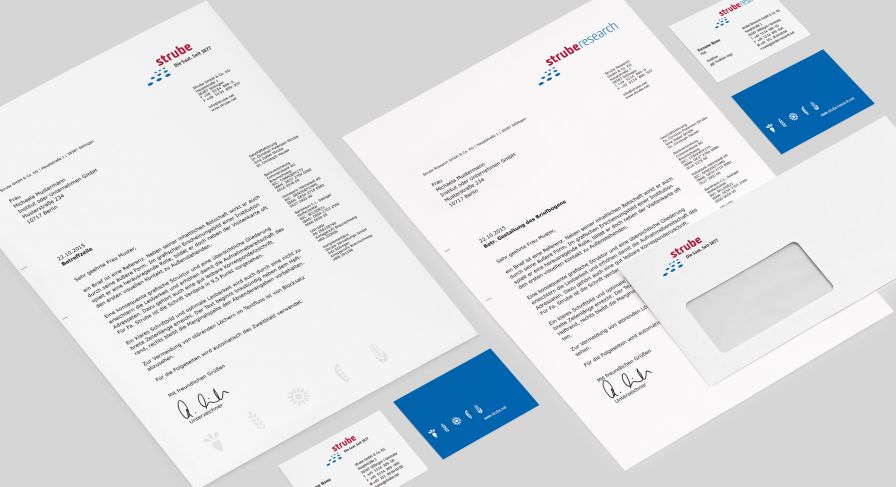 The office communication of Strube includes all elements of the office equipment: From the letterhead to the business cards and PowerPoint presentations.