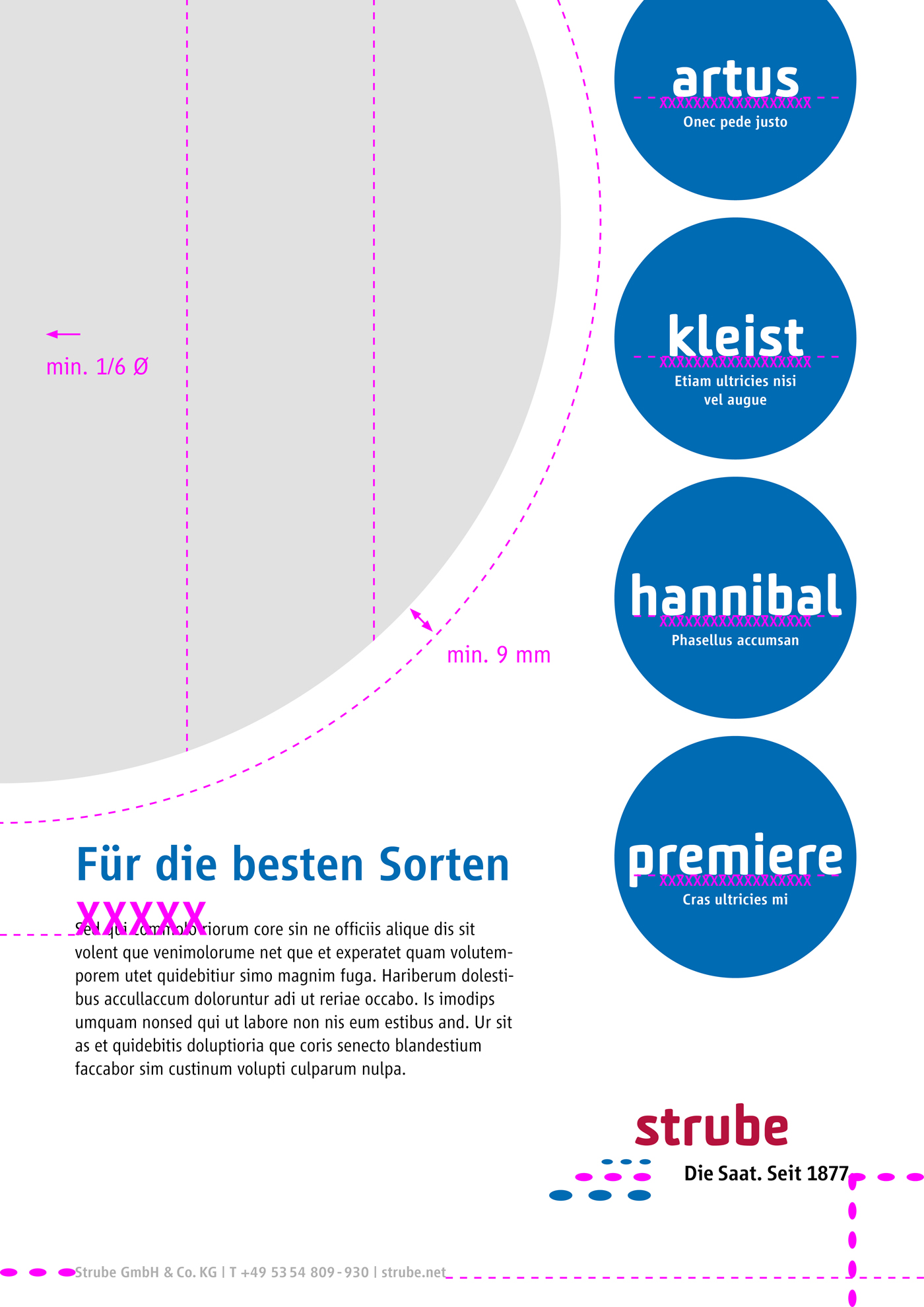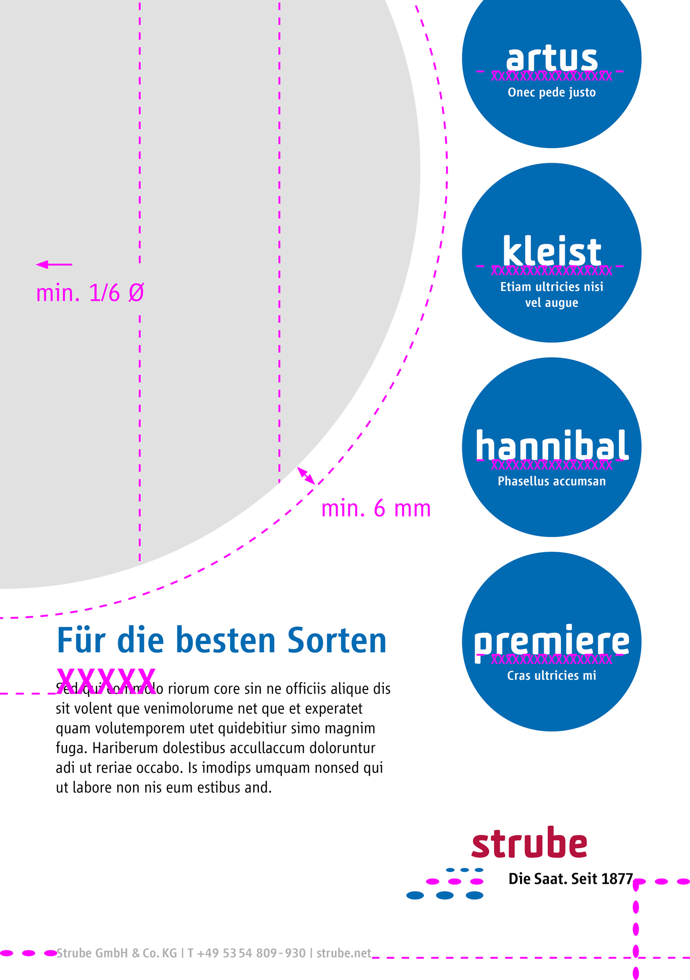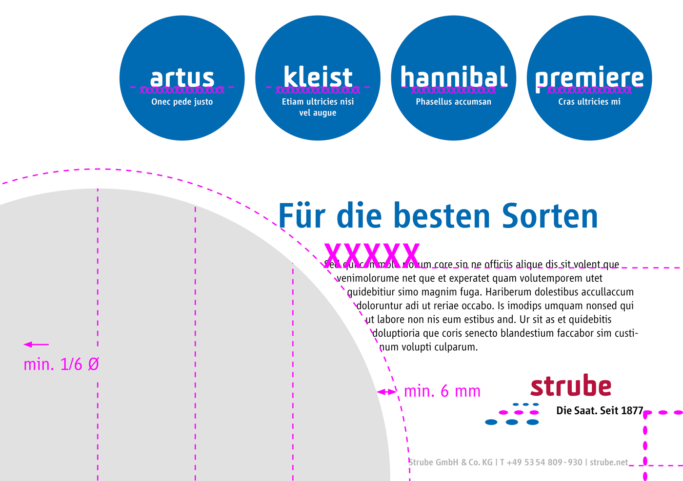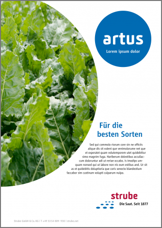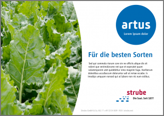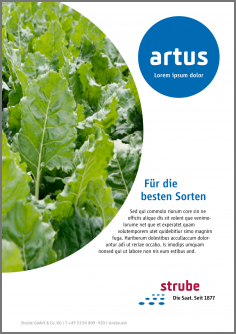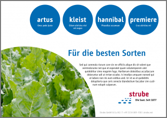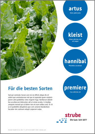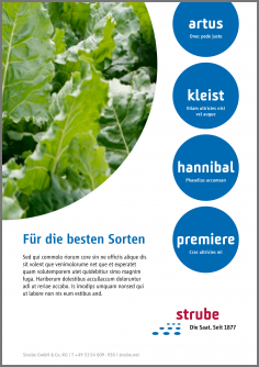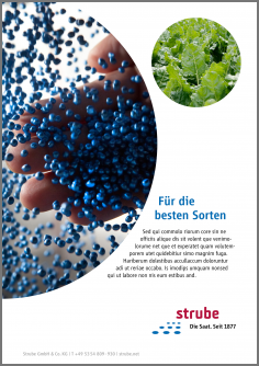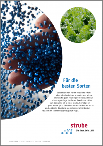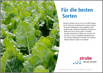 Strube product adverts have to be designed according to the CD specifications. A distinction is made between general product advertisements for image advertising and product advertisements for one or more varieties. Sample layouts are available in vertical and horizontal format.