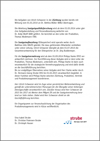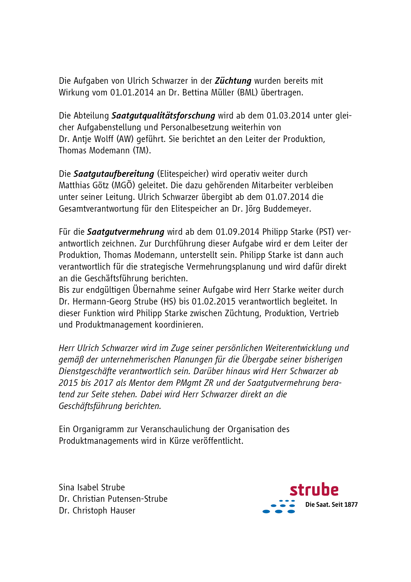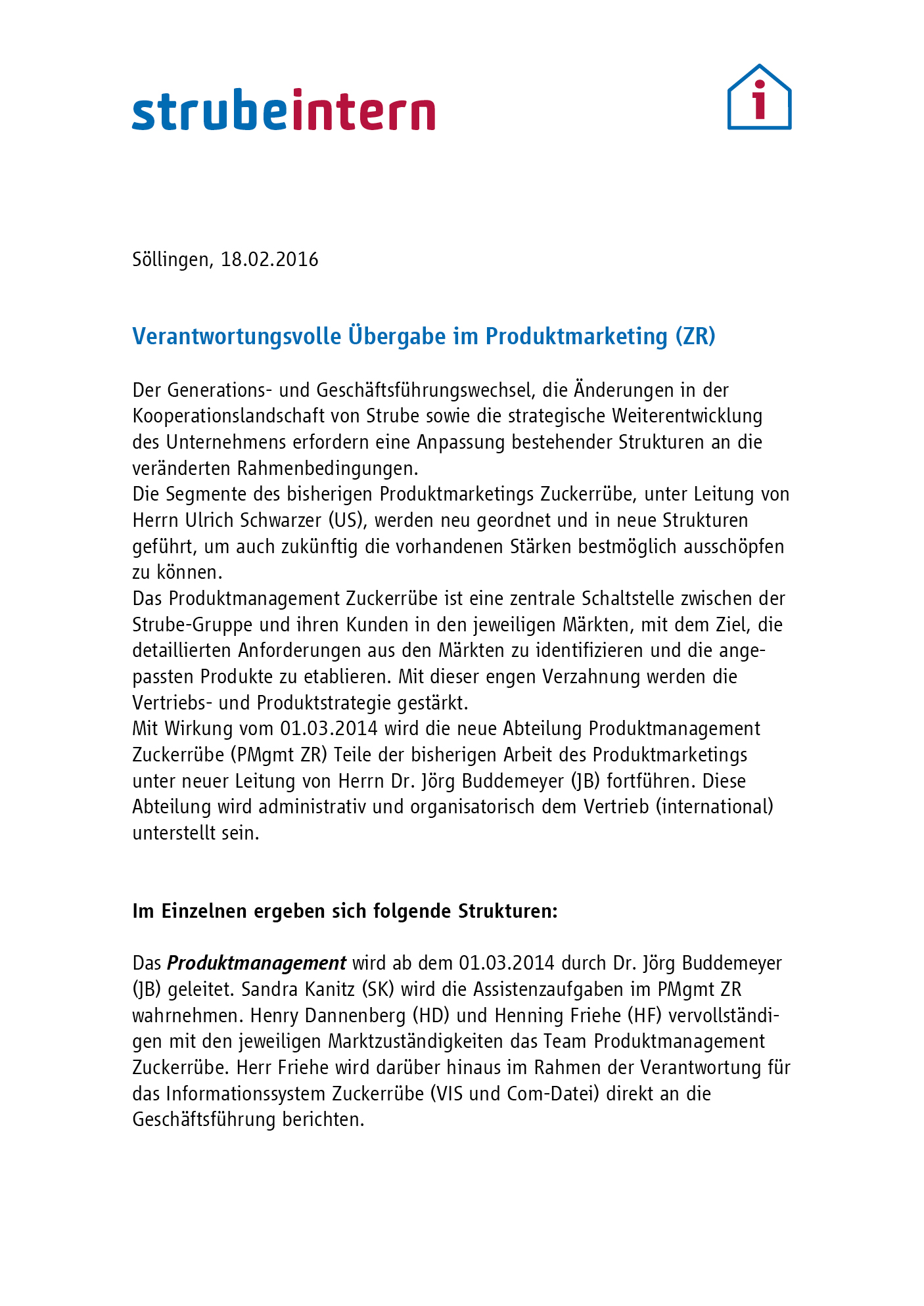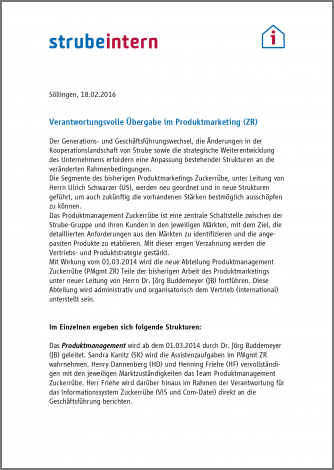 For further information about the Newsletter Internal please contact communication and marketing: k+m@strube.net
